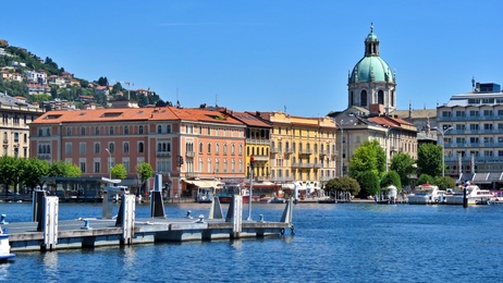 Partendo da Piazza Cavour, con vista sul lago, si raggiunge Piazza Duomo per la visita guidata della cattedrale, del Broletto medievale e poi di Piazza Verdi con i monumenti che ricordano varie epoche storiche (mura medievali, teatro neoclassico e la razionalista Casa del Fascio).